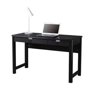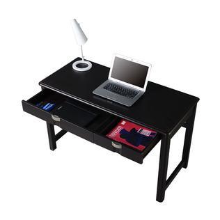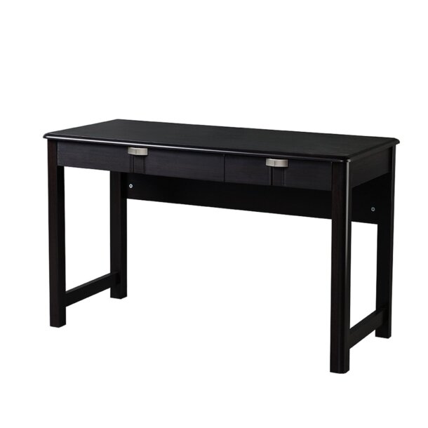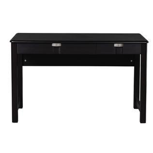 This Modern Writing Desk is constructed out of durable MDF wood panels in espresso color, with PVC laminate surface. It includes one oversize storage drawer and one standard drawer, equipping it with plenty of space for storing your accessories, laptop, tablet and more. Easy and ready to assemble. Desktop has a 60lbs weight capacity. Color: Espresso.