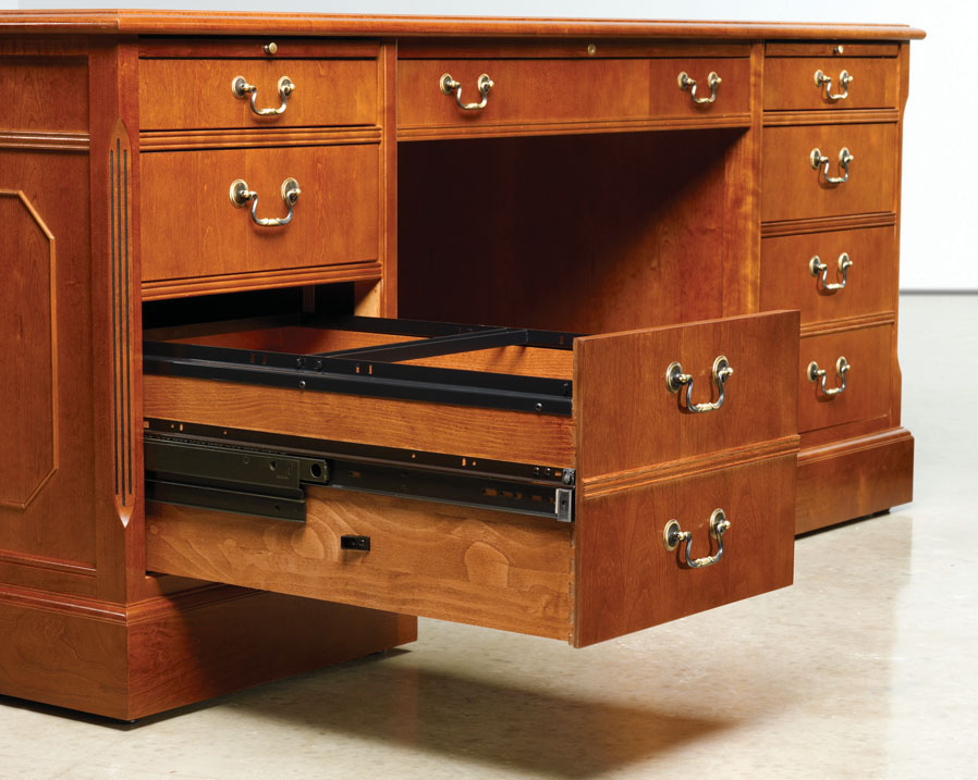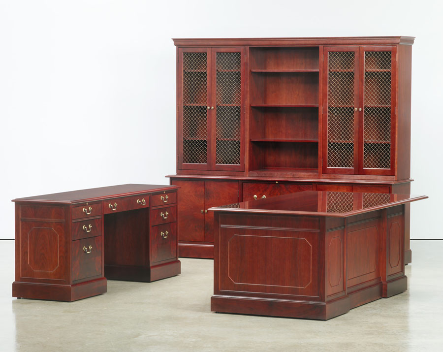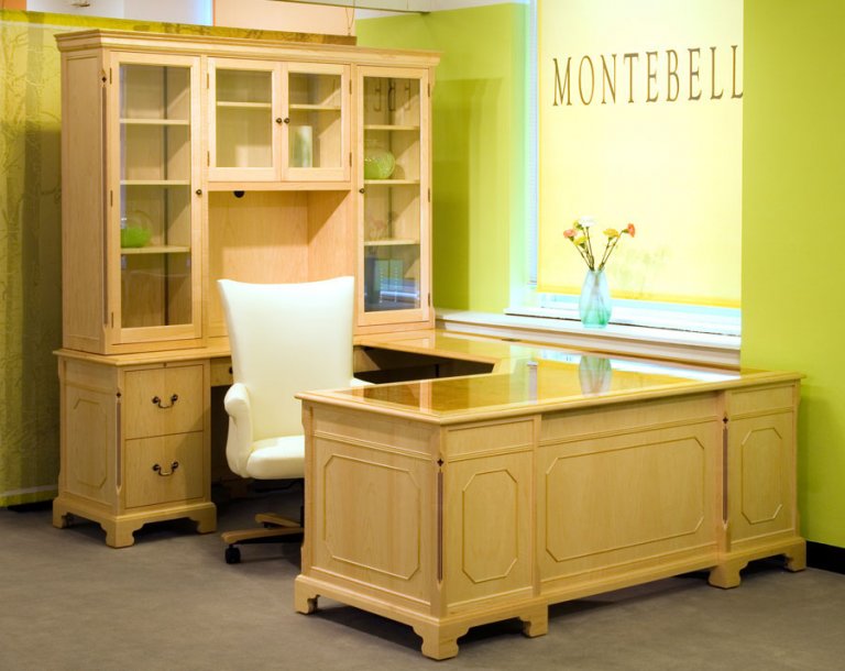 Our top of the line in quality office furniture — you cannot beat this longstanding giant. The Montebello Series of transitional office furniture accommodates all levels within an organization. Quality workmanship is built into every wood desk and furniture unit. Since 1940, this line of wood office furniture has graced many satisfied customers with its distinctive style. American black walnut and cherry veneers and solids give you the look of a real beauty. Face options, leather options and laser etched leg options allow you to enhance the look you desire. Do not overlook the quality, value and beauty of this dependable furniture line. Montebello is one of only a few collections using post & panel construction.