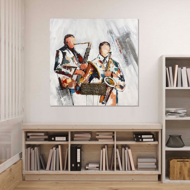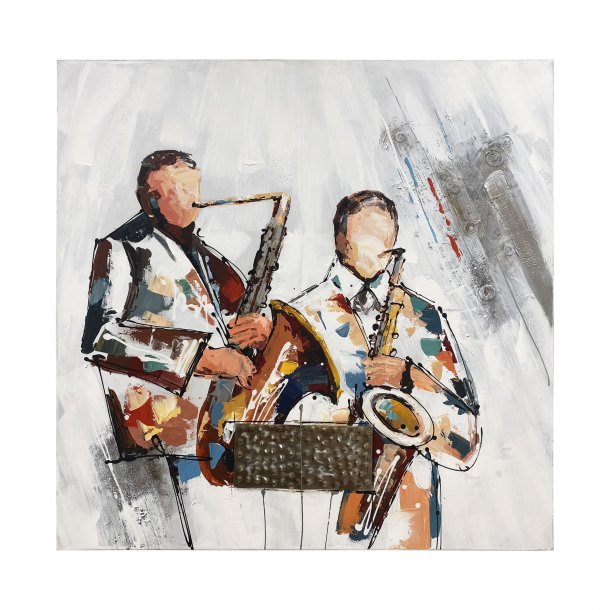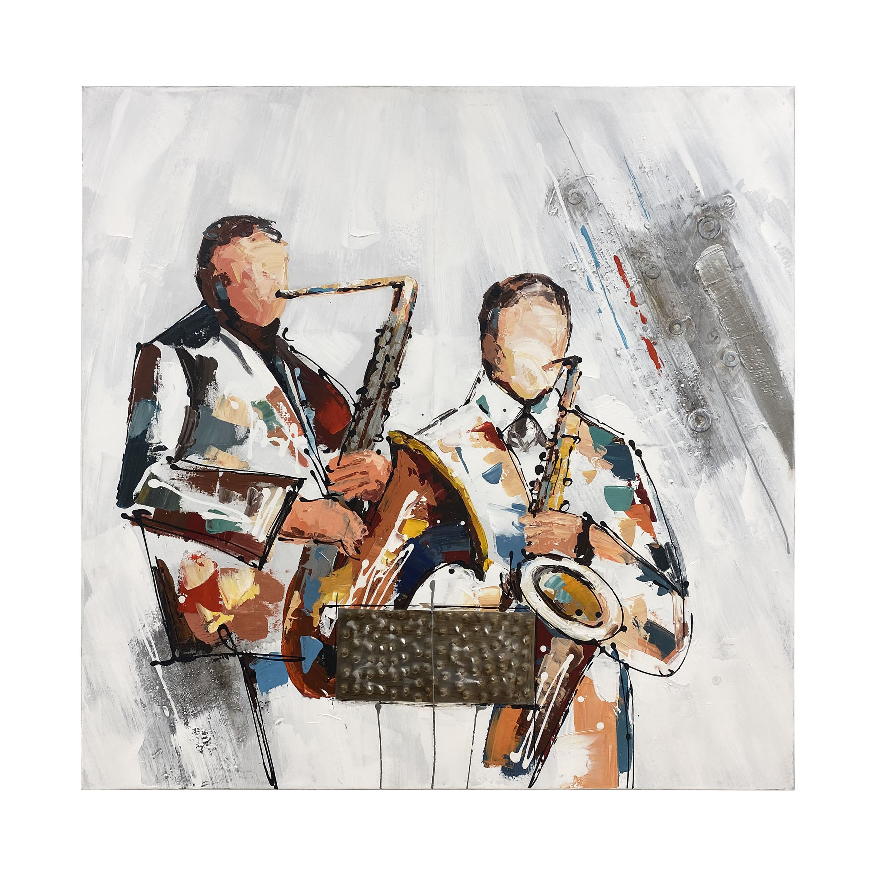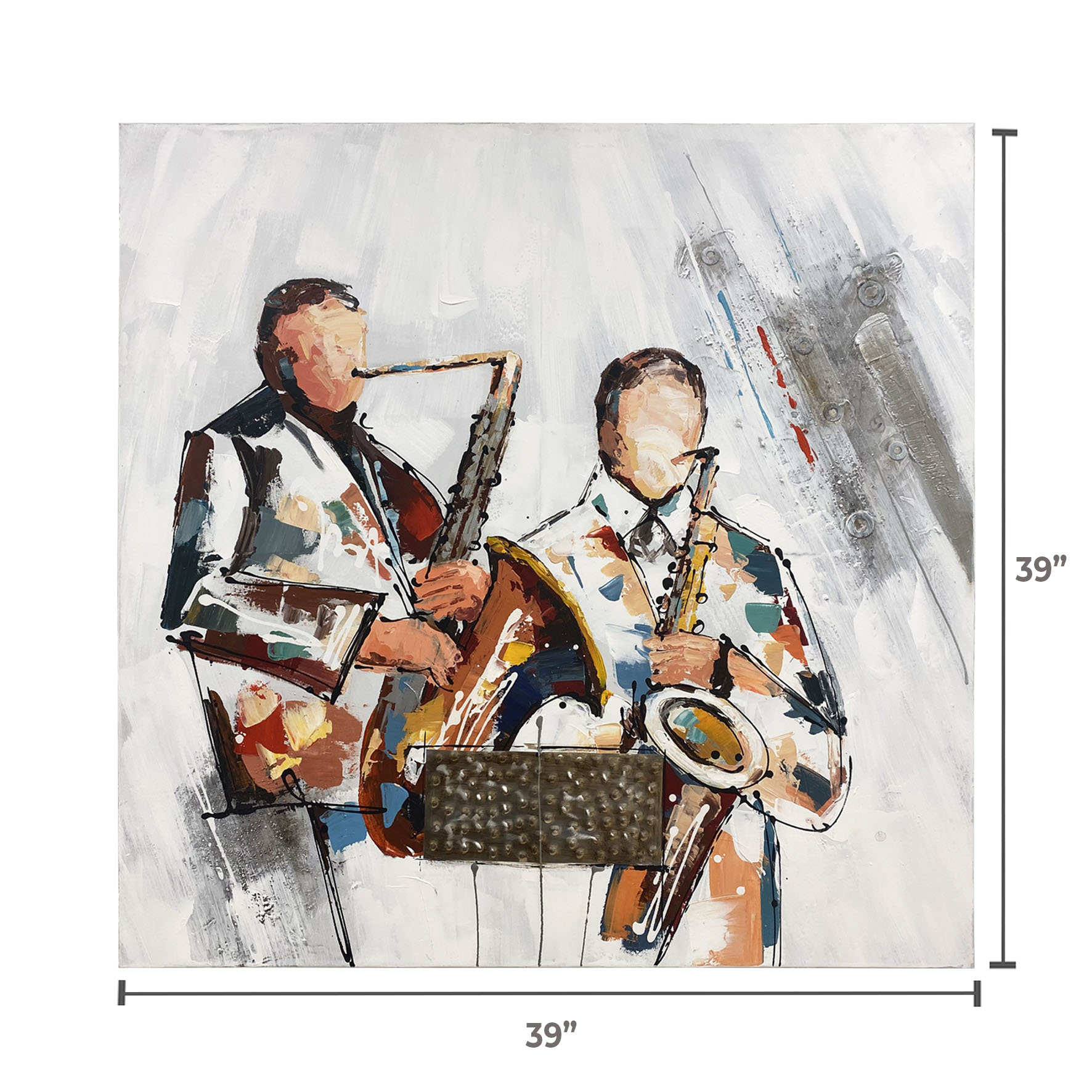 Handmade Oleo Aluminum Painting, “Musicians” Multicolors.