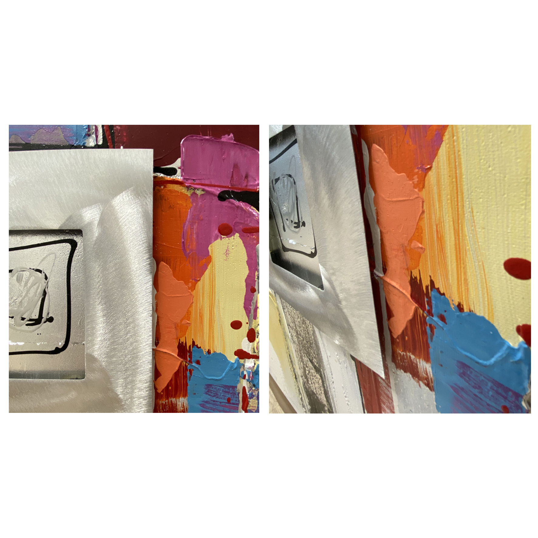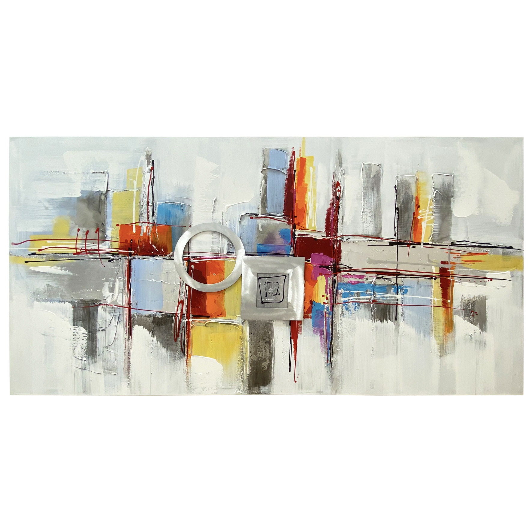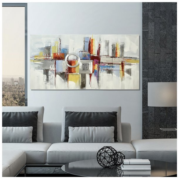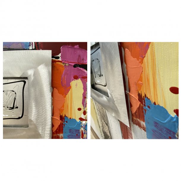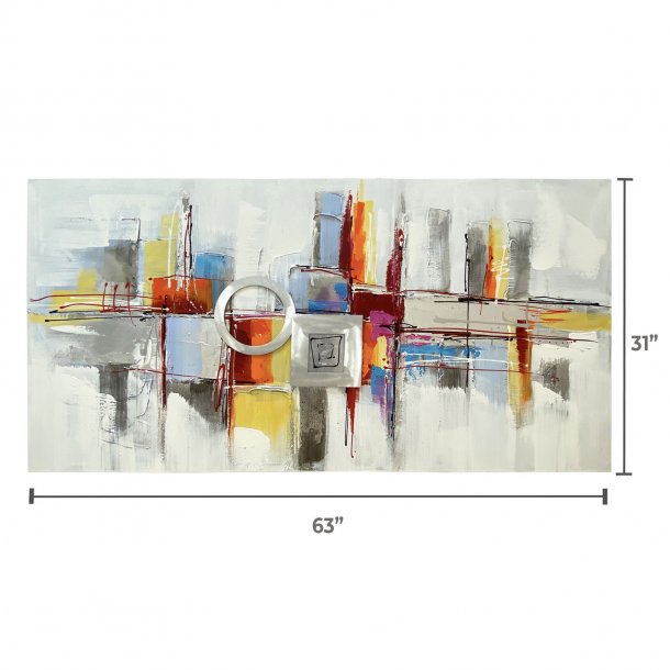 Colorful and contemporary New York City reflecting itself vertically. Abstract city painting with texture impasto and pieces to create a palette knife painting. This Aluminum on canvas will infuse your space with modern glamour.