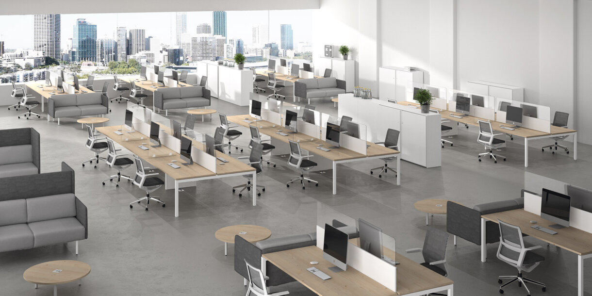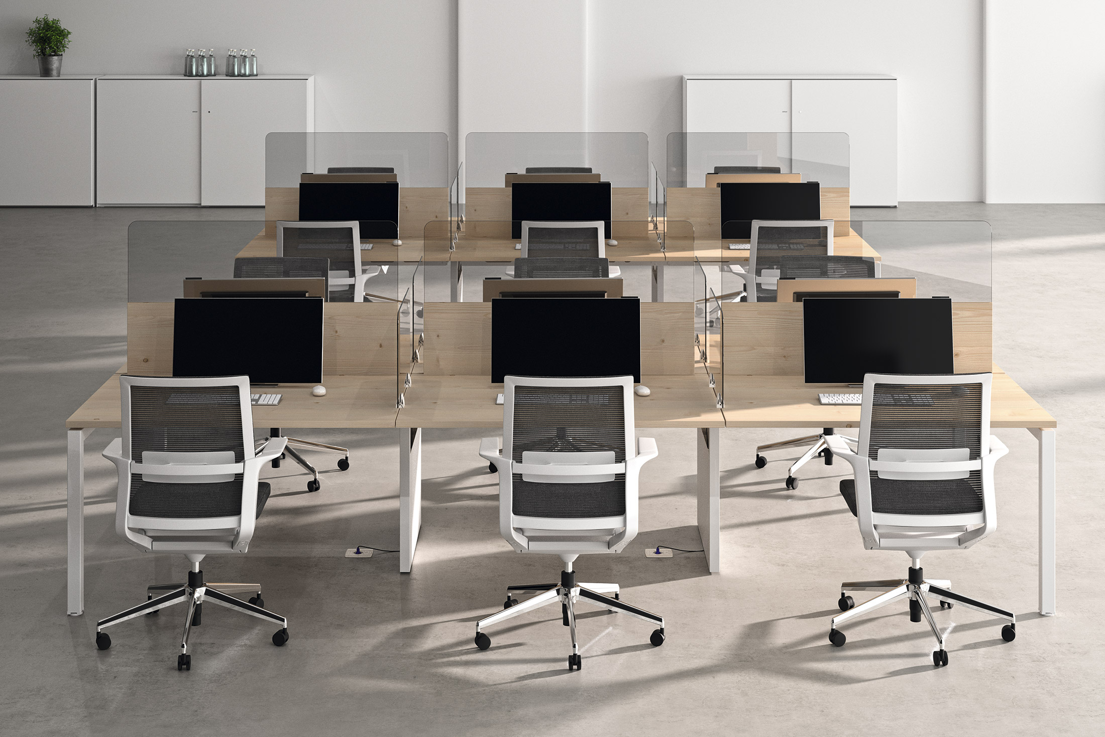 Appropriate for multiple applications and work environments, Nexo provides a perfect finish with its melamine boards combined with a metallic frame and electrified beams.
