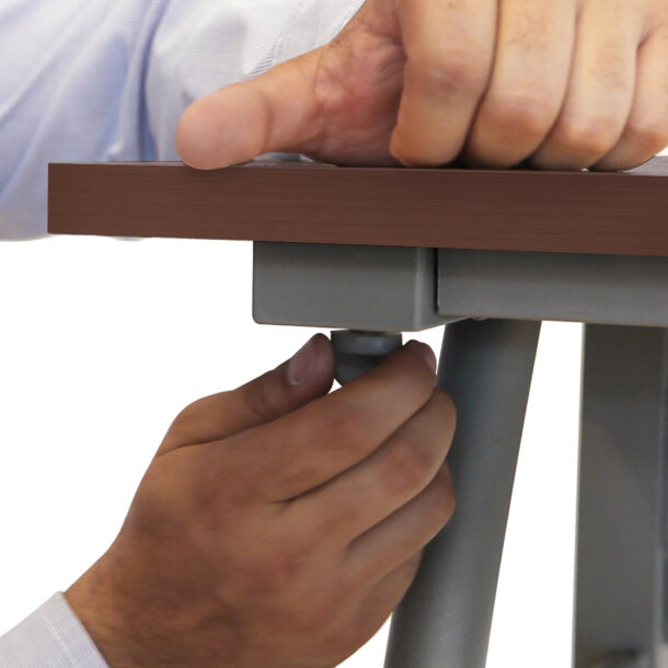 - Strong metal frame and legs in gray, thermofused laminated wood top.