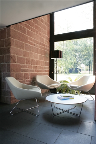 Open is an elegant and relatively compact, contemporary collection of soft seating, with chair and sofa sharing a formed Steel rod, base frame aesthetic. Angular and striking, they lend a physical lightness to the appeal of the design.