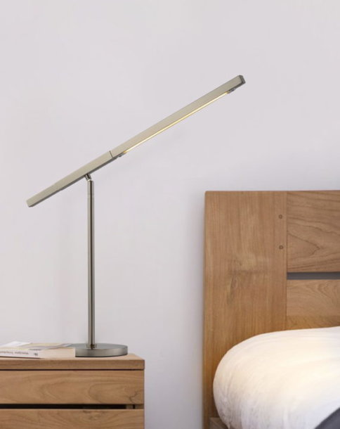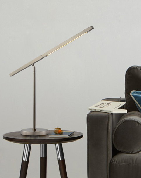 Bring LED technology to a work or study space with the functional yet beautiful styling of this extension table lamp. The mixture of hardened steel in a satin nickel finish lends a heightened sense of handsomeness to this energy-efficient desk lamp. Not skimping on practical functionality, this LED table lamp includes a handy touch dimmer. Easily charge and plug in your devices in the USB and Power Outlet.