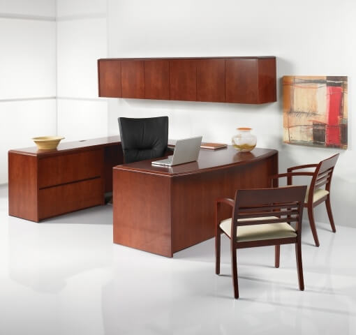 Furniture on a mission, Quest surrounds workers with a multitude of office solutions. A comprehensive selection of components can be configured to suit a variety of spaces. Featuring the finest select maple, cherry, and walnut veneers with a rich, matte, non-glare finish. Also available in a wide variety of laminate choices.