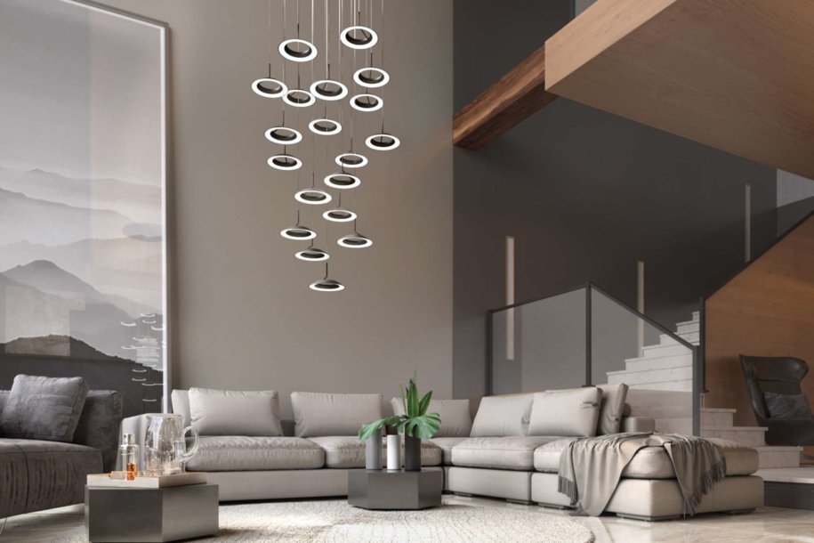 All configurations come with matching canopies, except the chrome finish of Linear 3, Linear 5, Linear 7, Circular 6, Circular 13 and Circular 19 configurations, which come with white canopies. Any finish/configuration can be customized to have a white canopy.