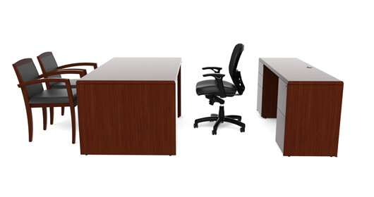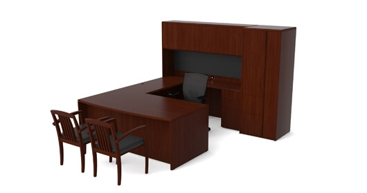 Consists of desks, returns/bridges, bridge/knee-space credenzas, pedestals, hutches, door storage, bookcases, lateral files, wall mounted storage, conference tables, presentation boards and privacy screens.