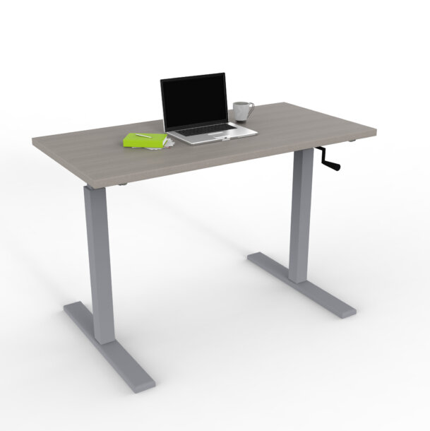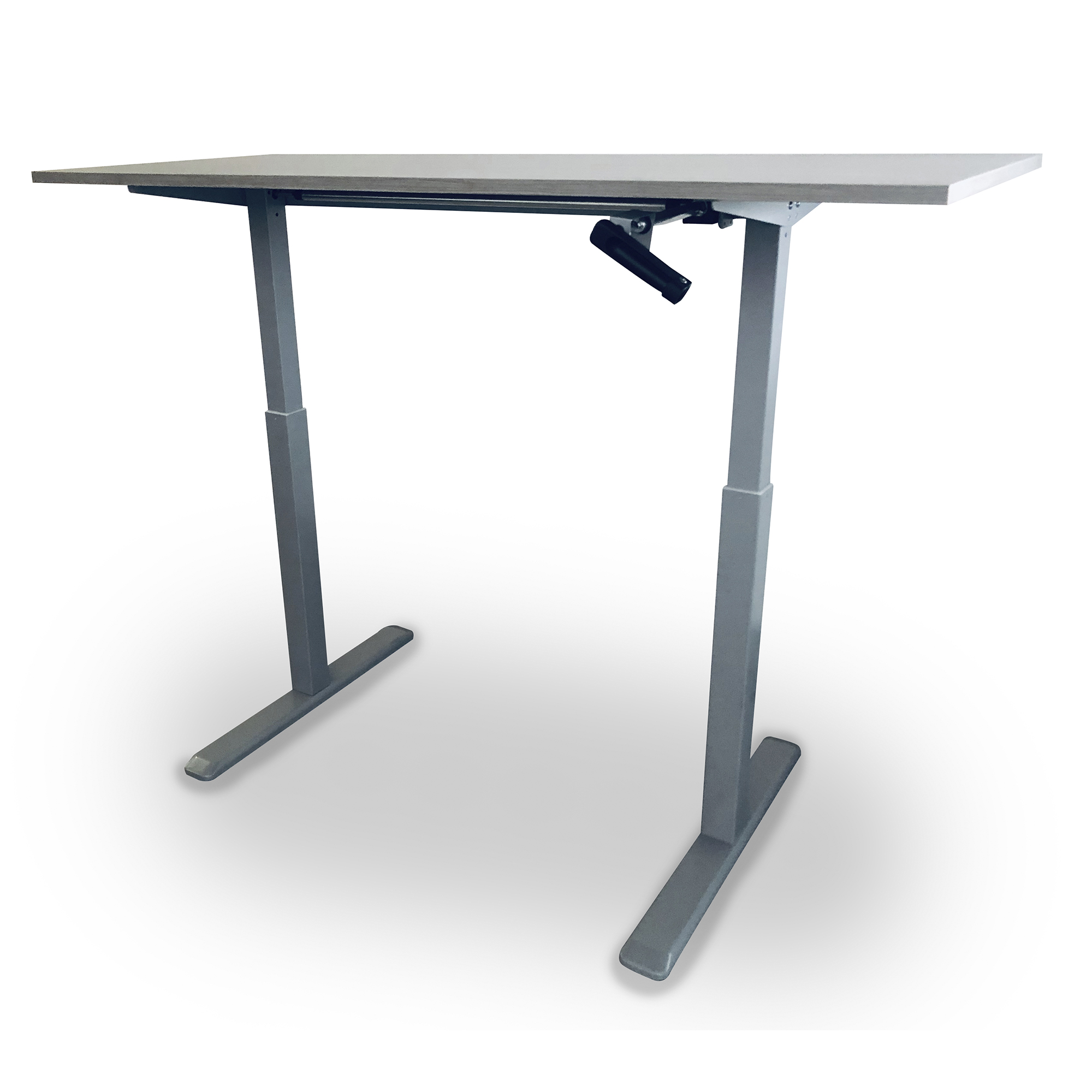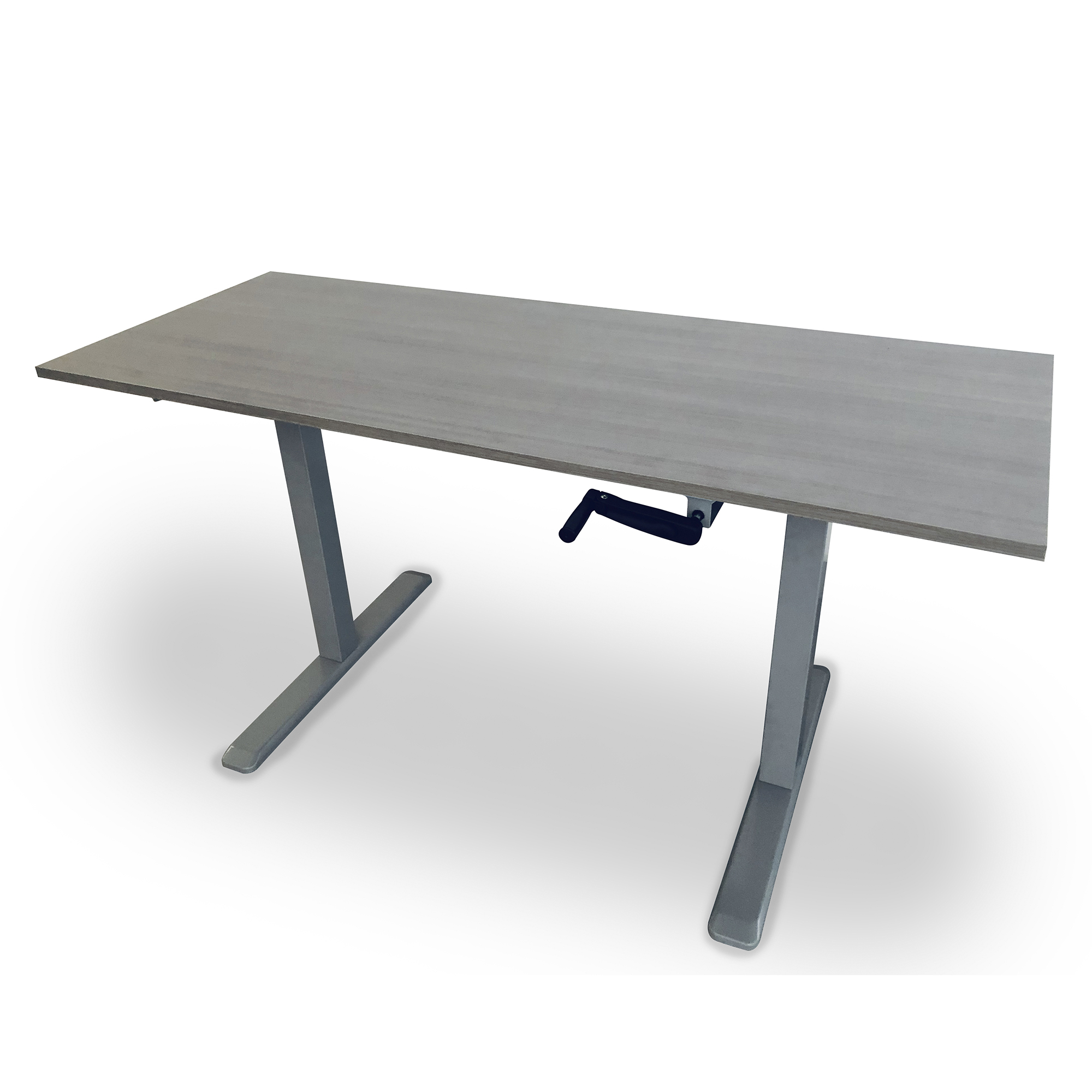 - This Standing Desk with Adjustable Height t is super easy to adapt with Retractil Manual Hand Crank, it is also made with strong steel frame and a thermofused laminated wood top.