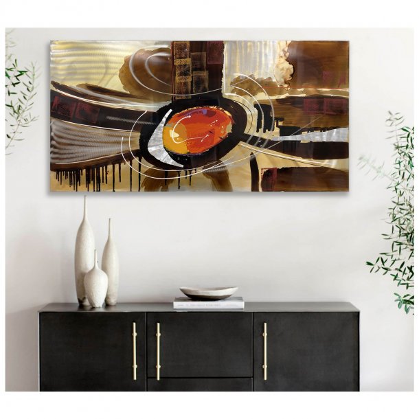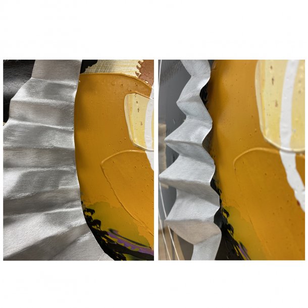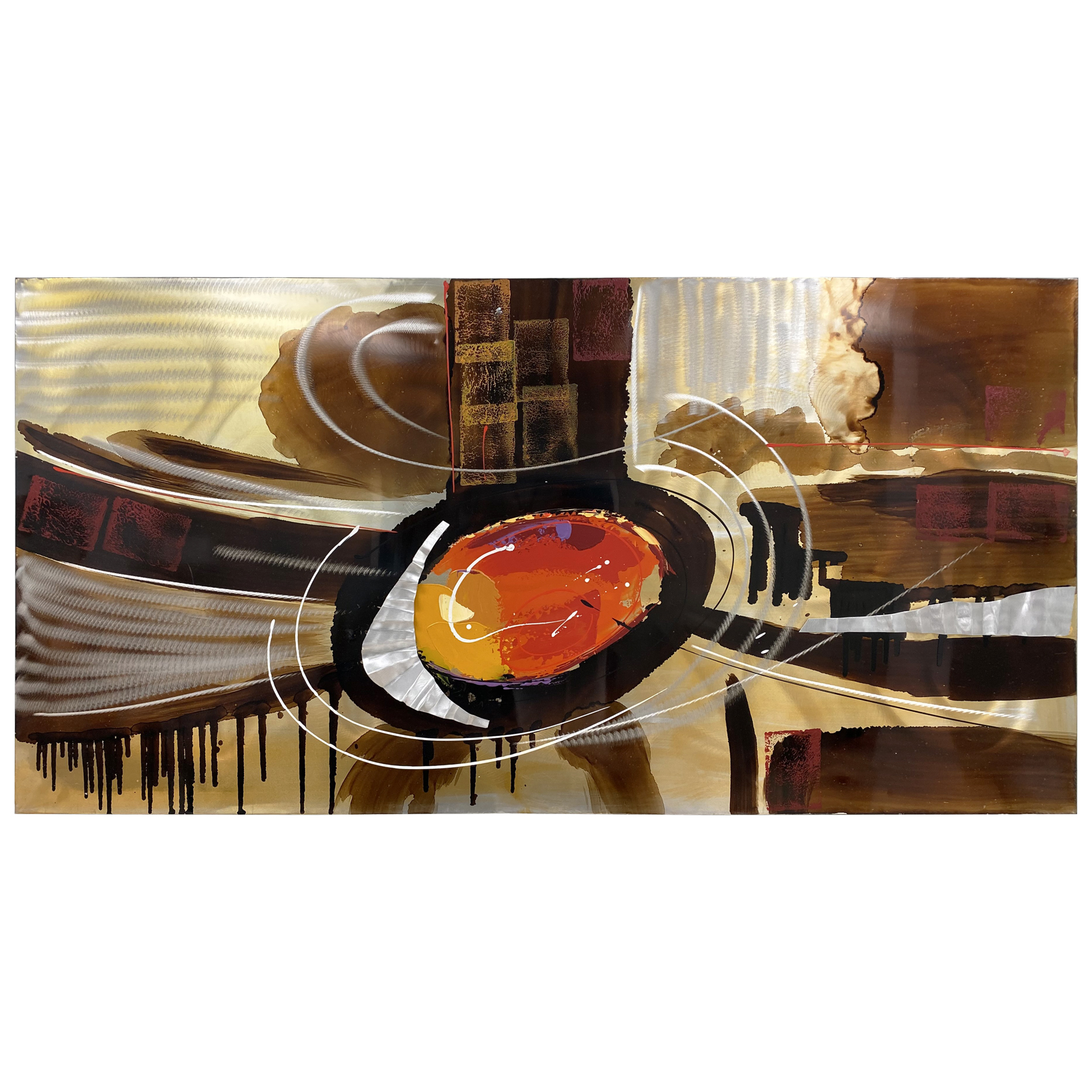 This modern abstract canvas features a rustic Aluminum brushed background printed with a curved Aluminum strips and curved lines.