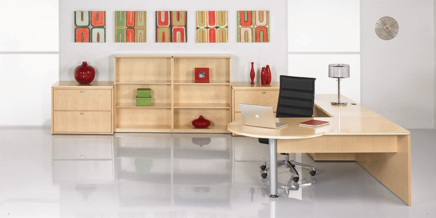 Contemporary furniture with a high IQ, Smart is designed for intelligent work space choices. Executive desks feature arched modesty panels for an added architectural accent. Featuring the finest select maple, cherry, and walnut veneers with a rich, matte, non-glare finish.