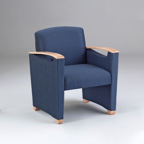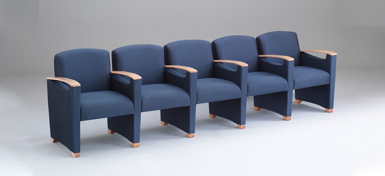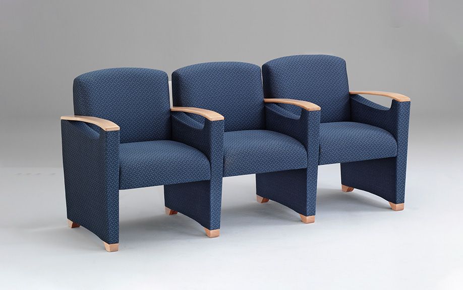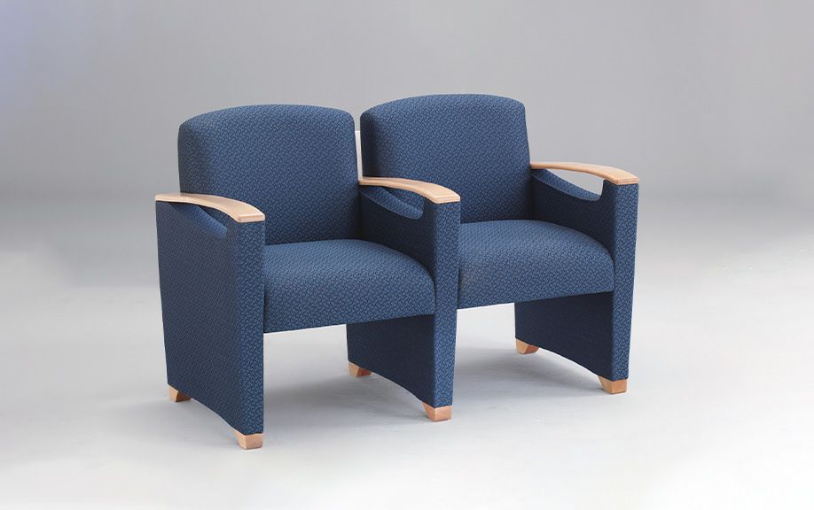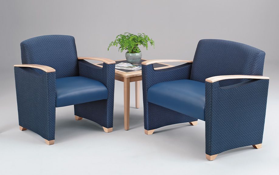 Sophisticated open tear drop arm design | 400 lb. capacity per standard seat, 750 lb. capacity on bariatric chair | Matching solid wood occasional tables with durable high pressure laminate insets