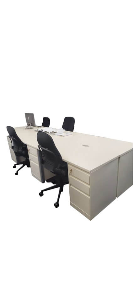 Price: $899.00 (1-4) $699.00 (5 or more) Individual desk with (1) b/b/f pedestal with white base