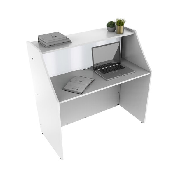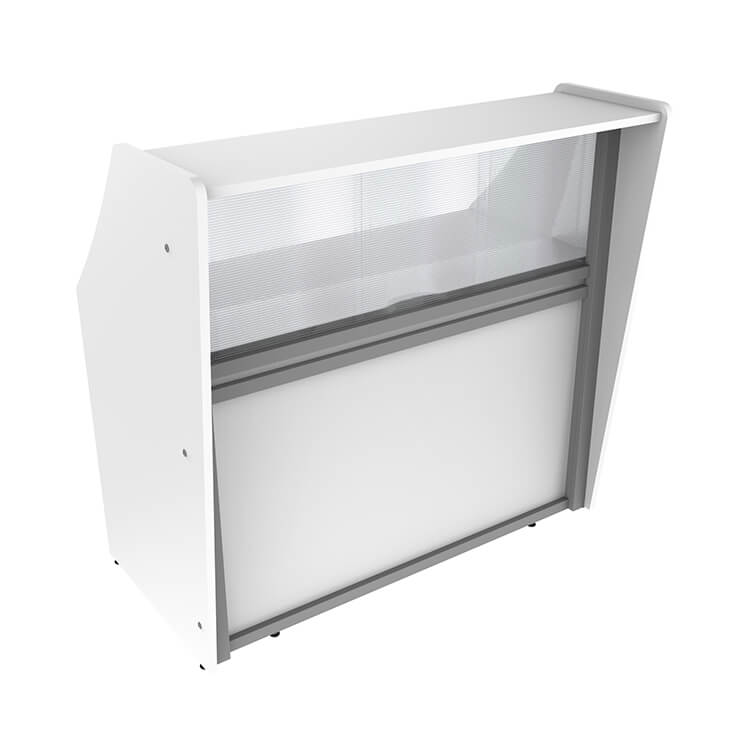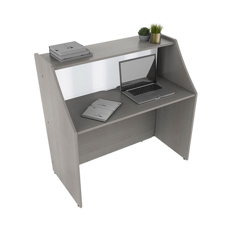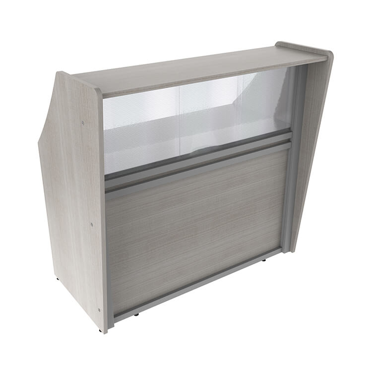 Straight Modern Reception Desk With Counter Clear Panel that allows light into desk area.