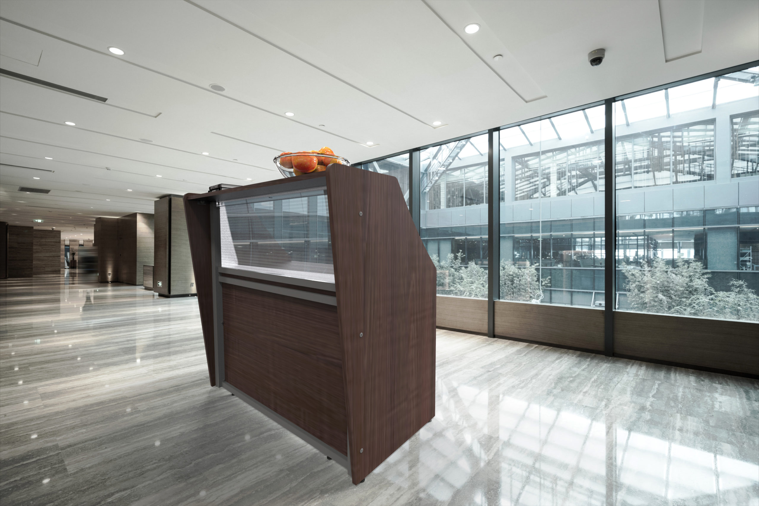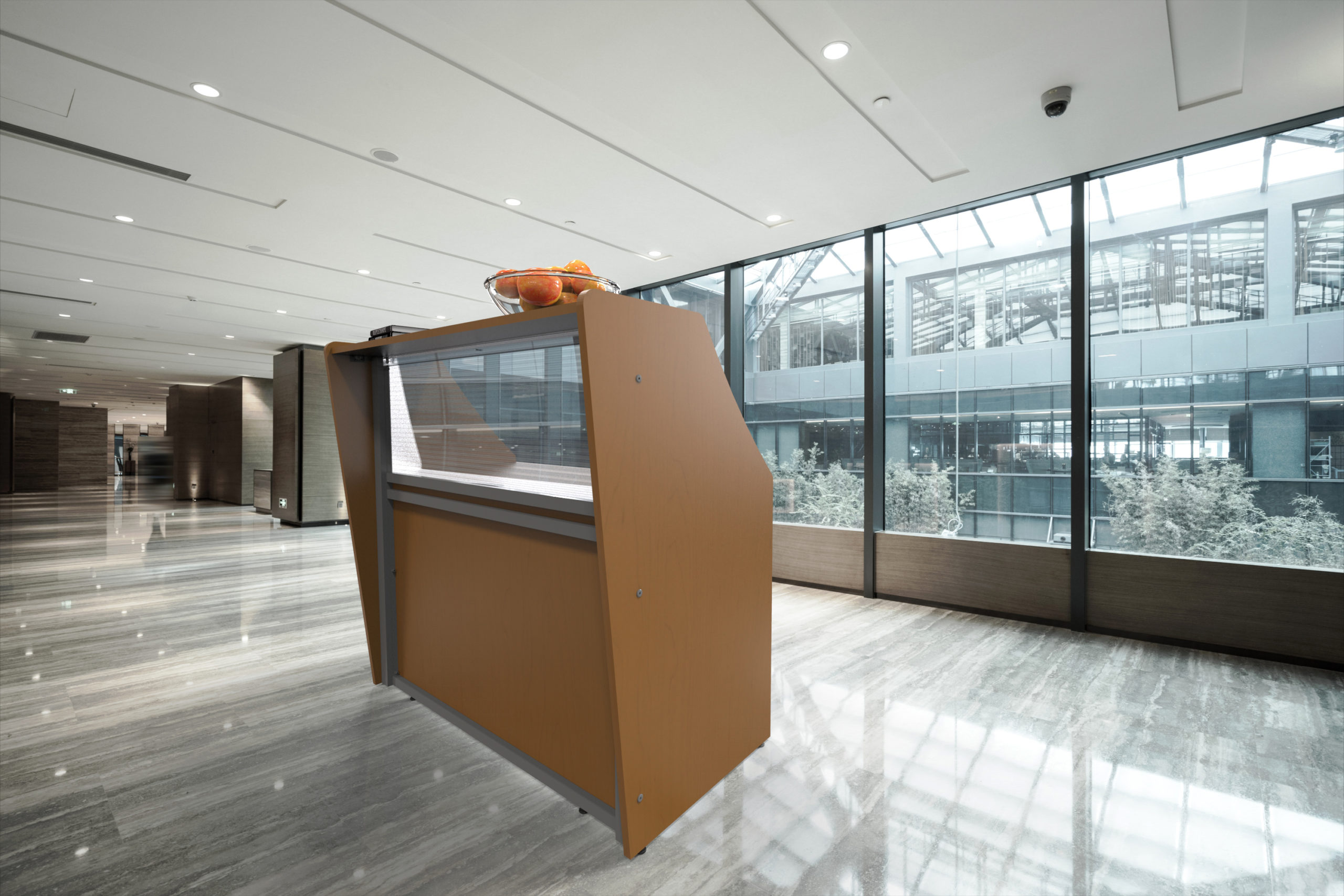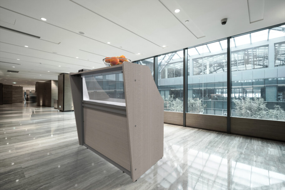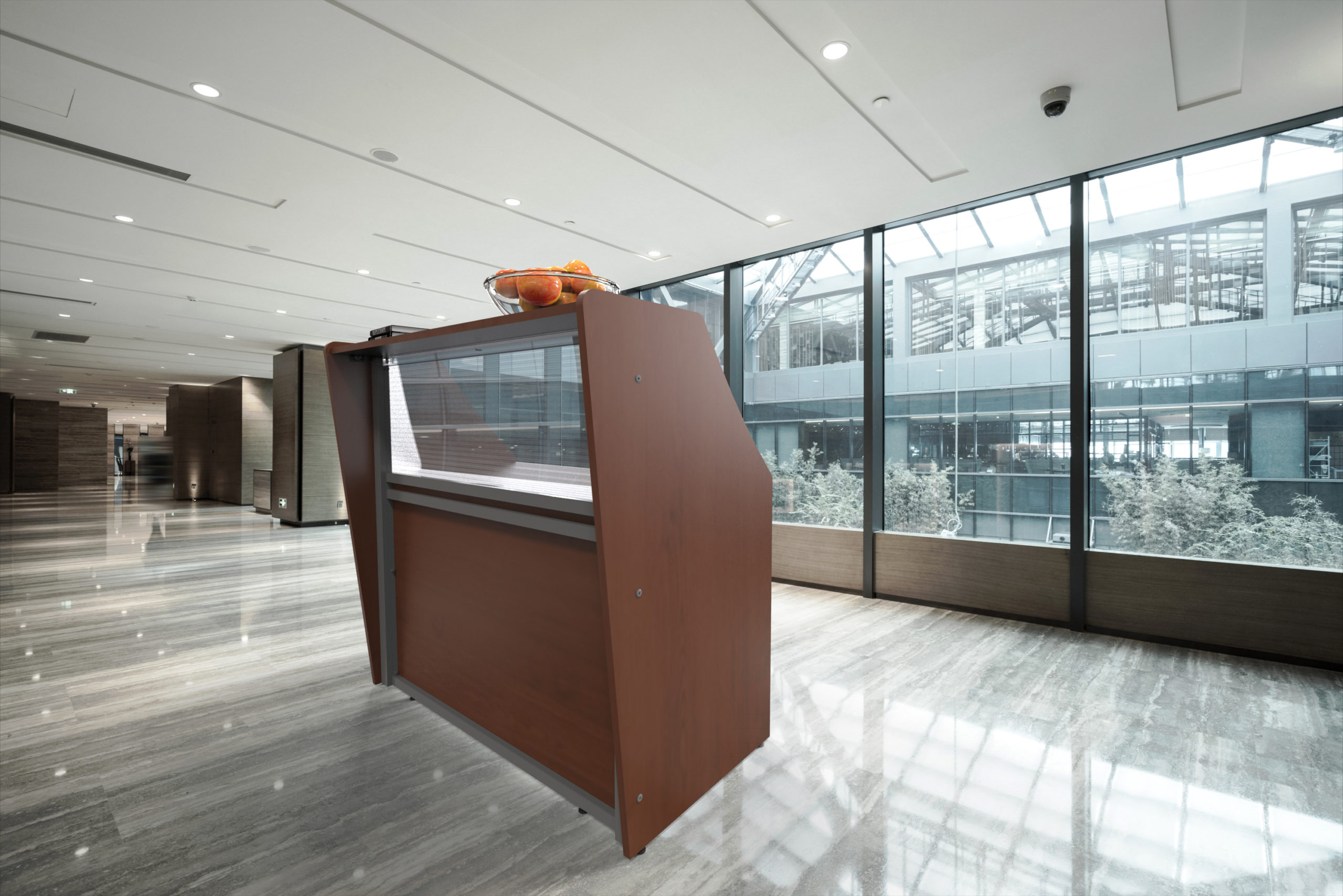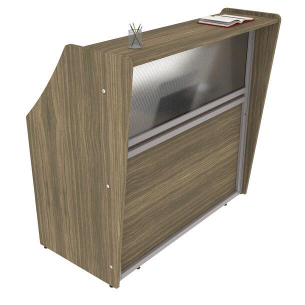- Straight Modern Reception Desk With Counter Clear Panel that allows ligth into desk area