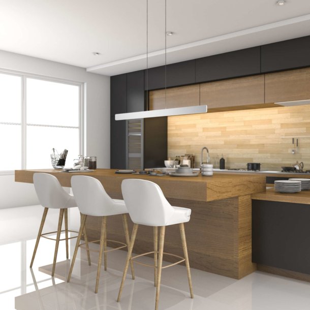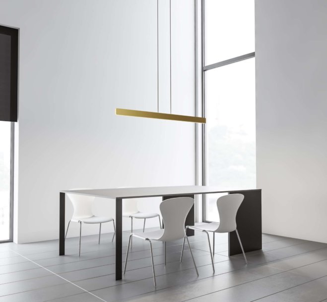 The exquisite Sub Pendant boasts a minimalist profile and emits a soft, warm glow. A continuous line of LED light wrapping around the entire piece allows this pendant to function as both a task light for work surfaces and ambient light for ceilings.