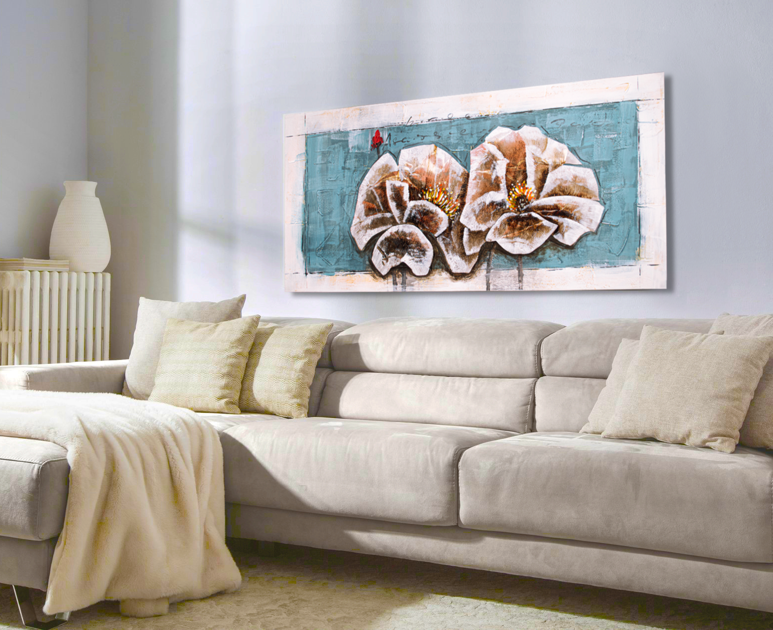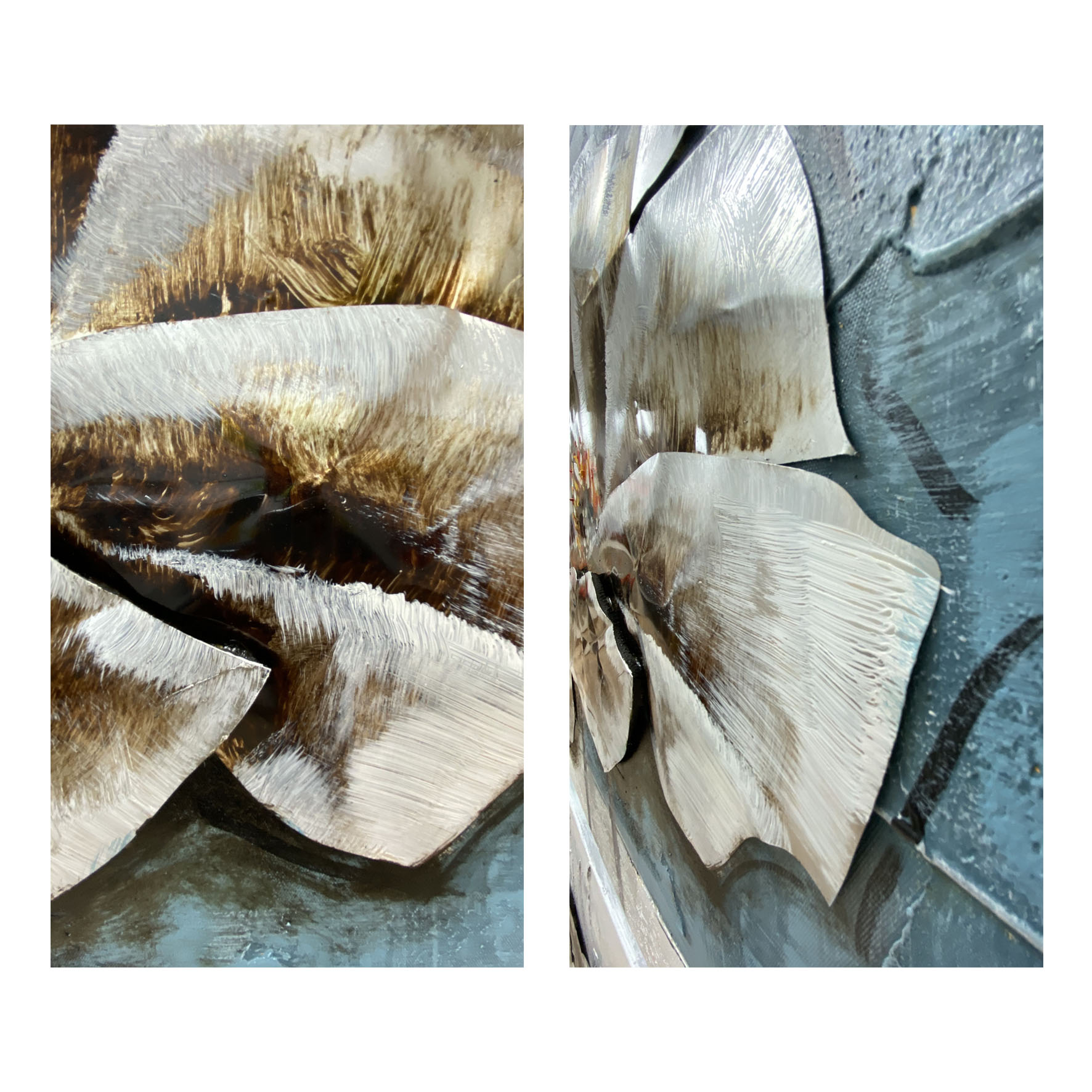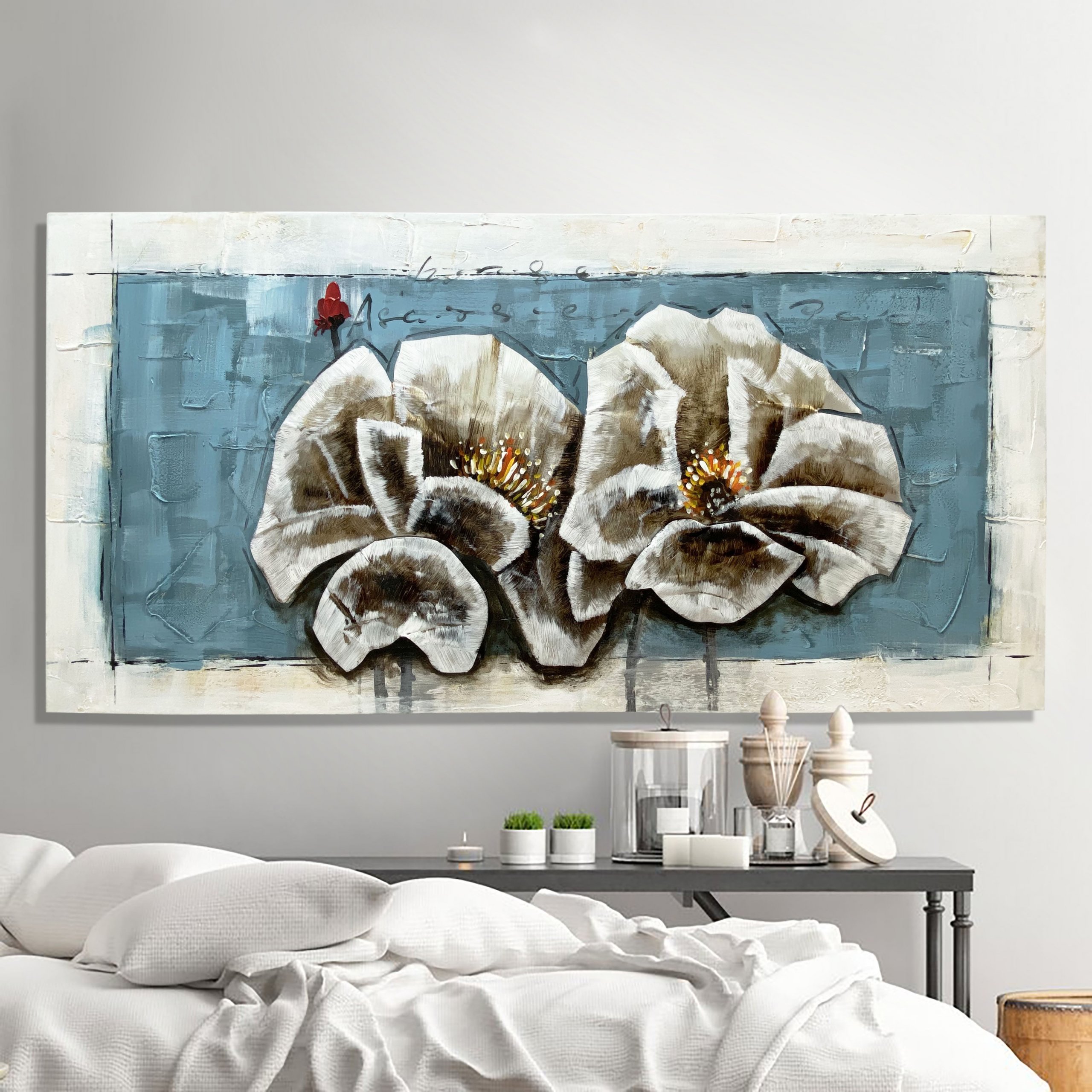 This modern Aluminum canvas is beautifully designed in soft, soothing colors & finished off wonderfully with a hint of Aluminum embellishment.