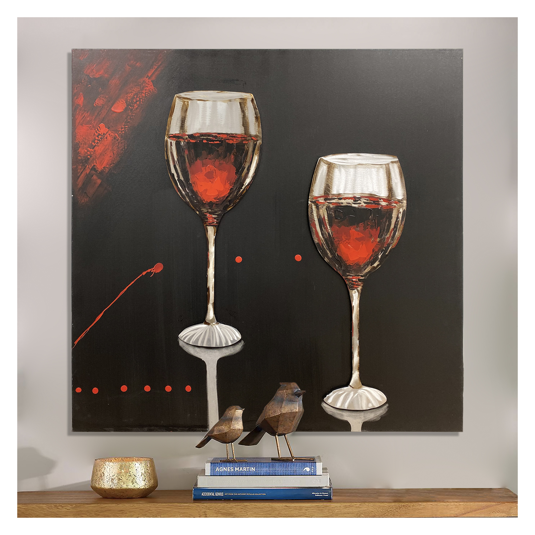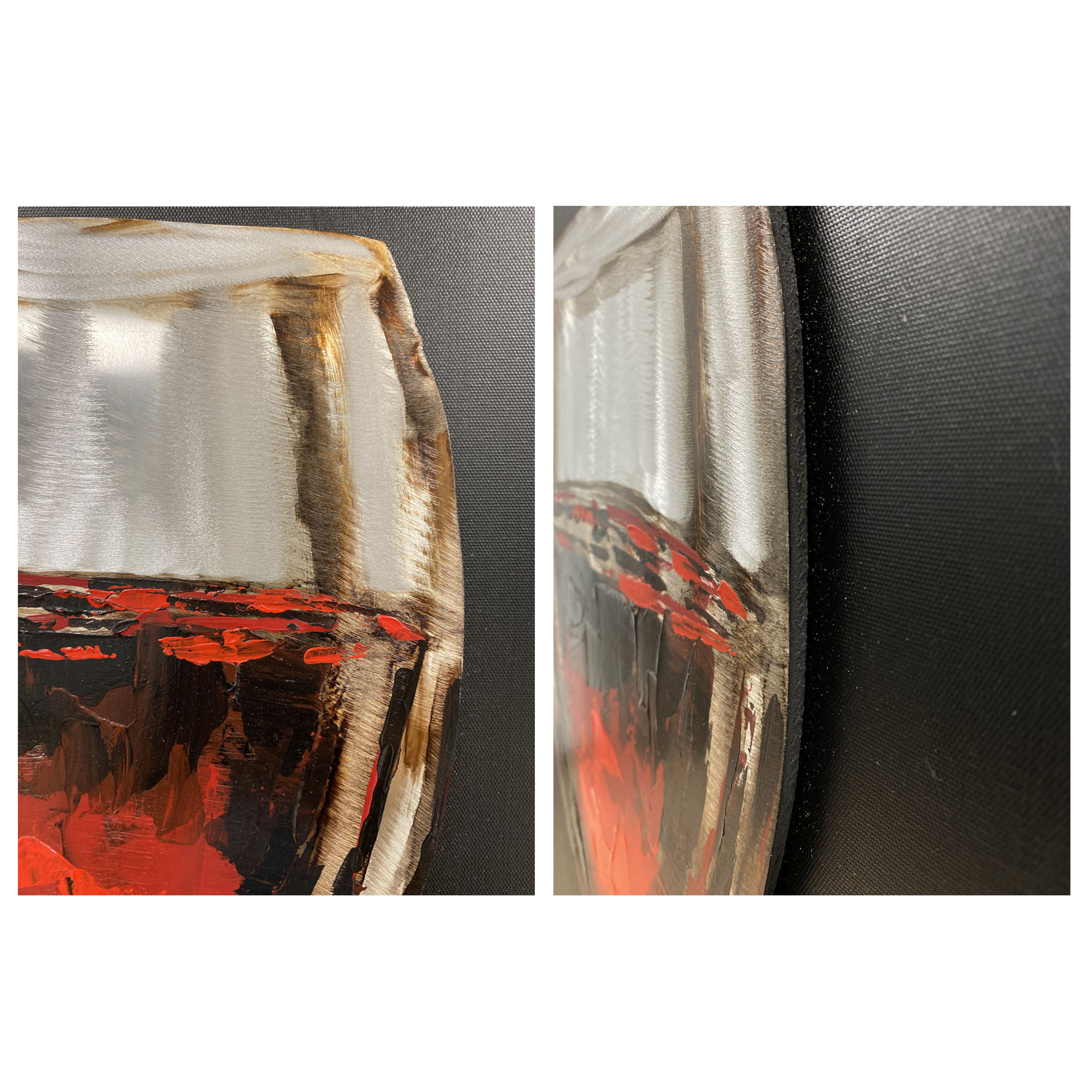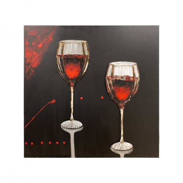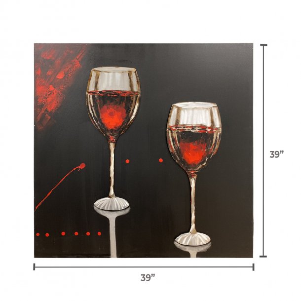Handmade Oleo Aluminum Painting, “2 Wine Glasses” Red and Black colors with 3D Relief Aluminum Sheet details.