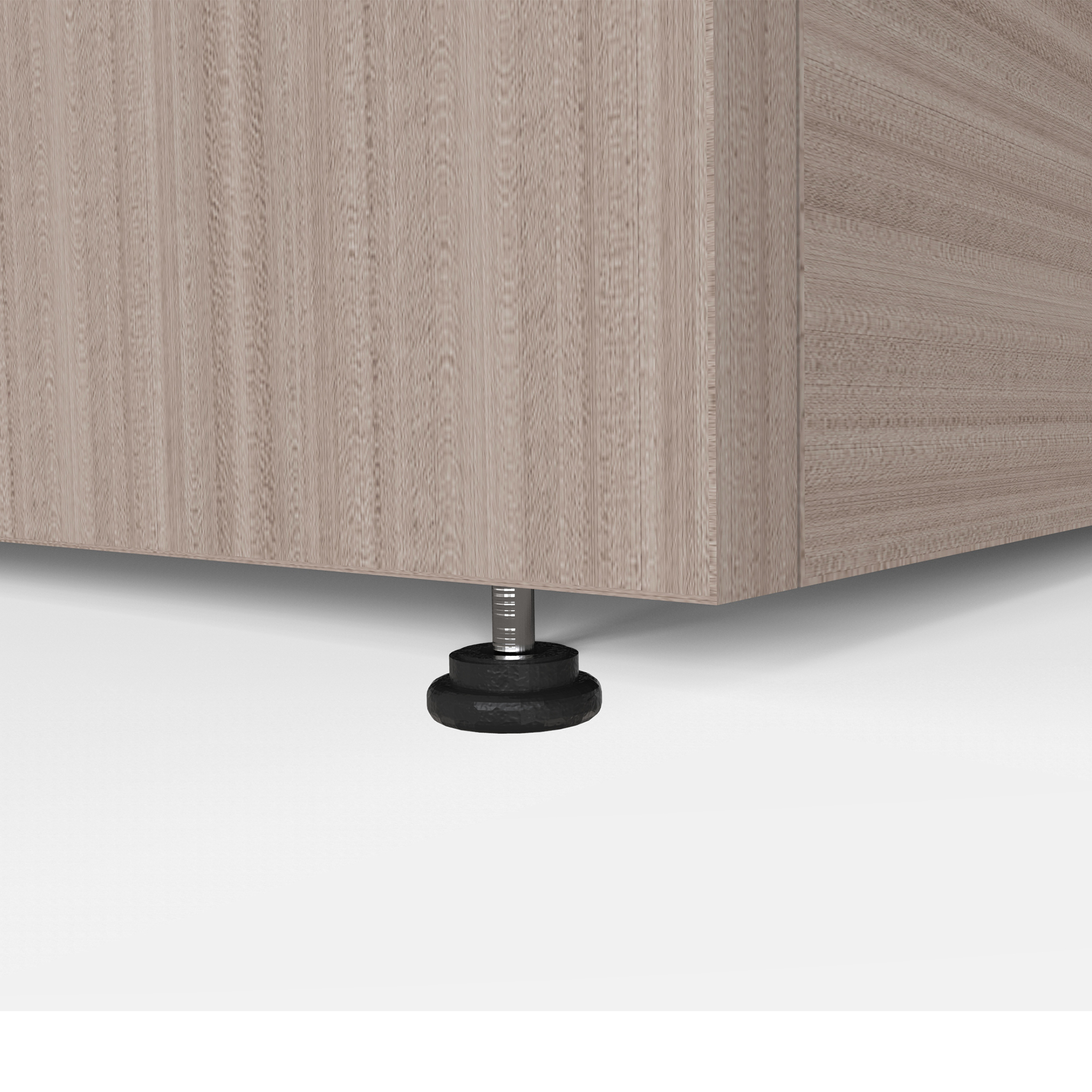 - Easy assembly in less than 9 minutes or less, no tools required, leveling glides for uneven flooring